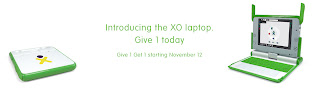 Do you want to fight a war on poverty? A war on terror? A war on the senseless waste of the sole source of capital, the human mind? Here’s your chance. For two weeks in November, you’ll be able to buy two XO laptops, the One-Laptop-Per-Child computer, with one coming to you and the other going to a hungry young mind overseas.